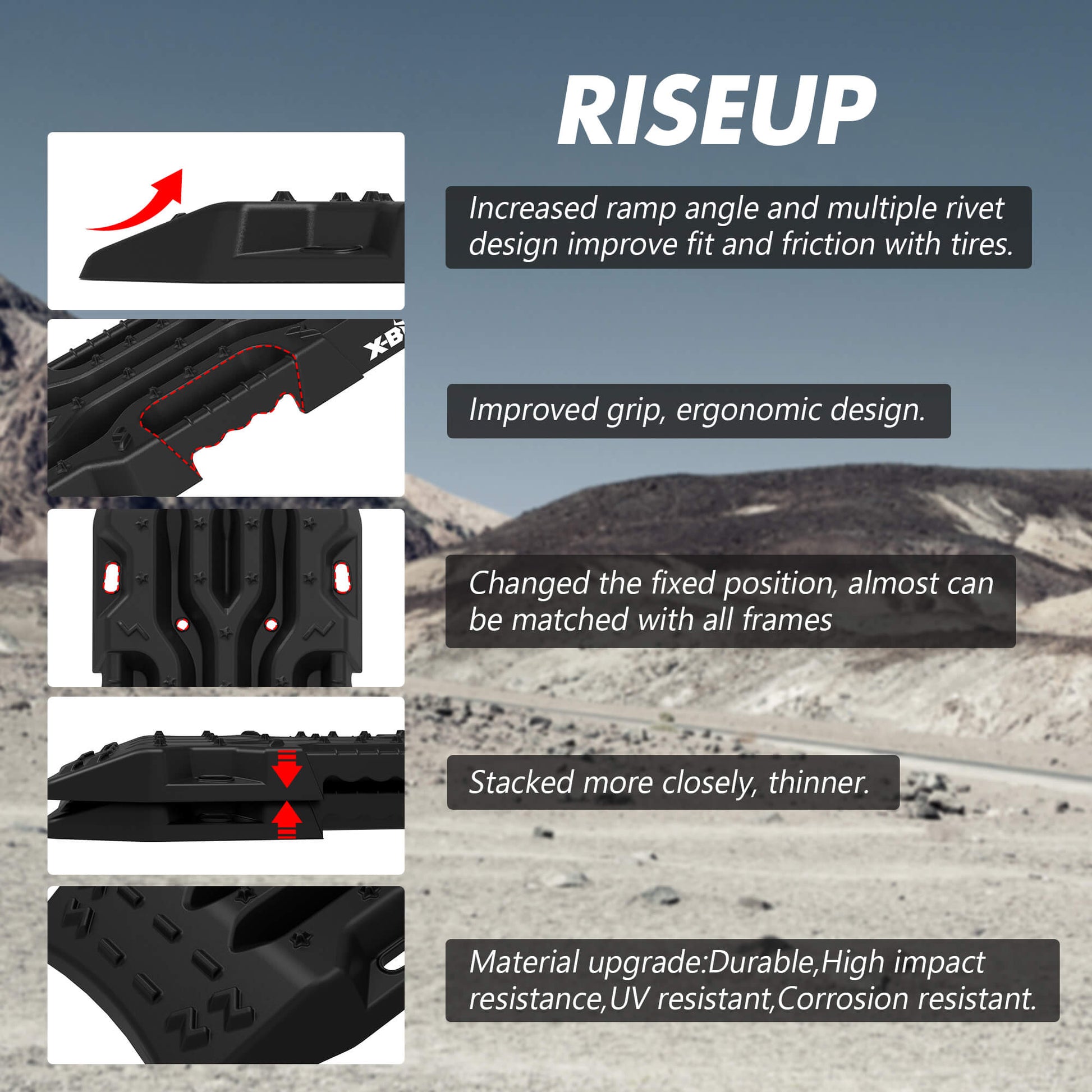 The XBULL Rise Up Series is designed to help you get unstuck and back on the trail faster and easier than ever before. Building on the success of the GEN2.0 and GEN3.0 tracks,the Rise Up Series combines the best features of both models into one ultimate recovery track.